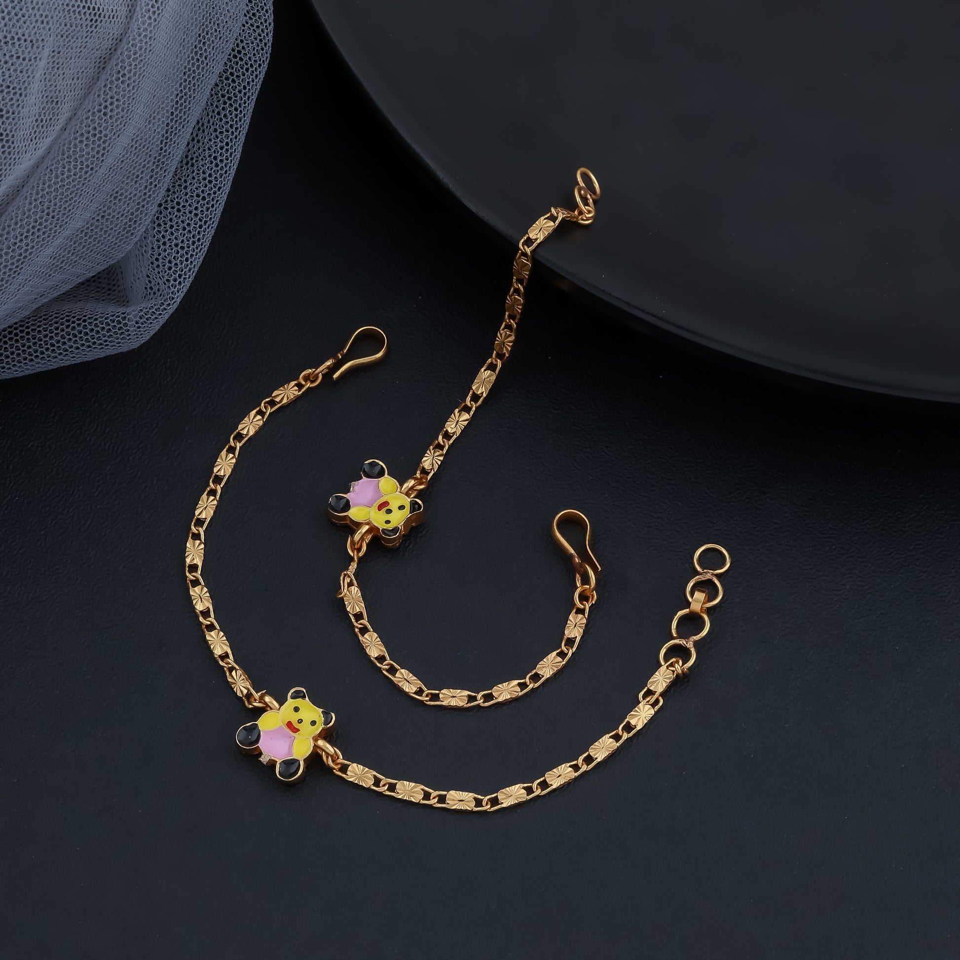 Color: Yellow Gold Material: Precious Alloys Size: Each 12 cm + 2 cm Adjustable Age Group: 3 Months to 8 Years Gender: Unisex (Boy & Girl) No. Of Products: 2 ( 1 Pair )