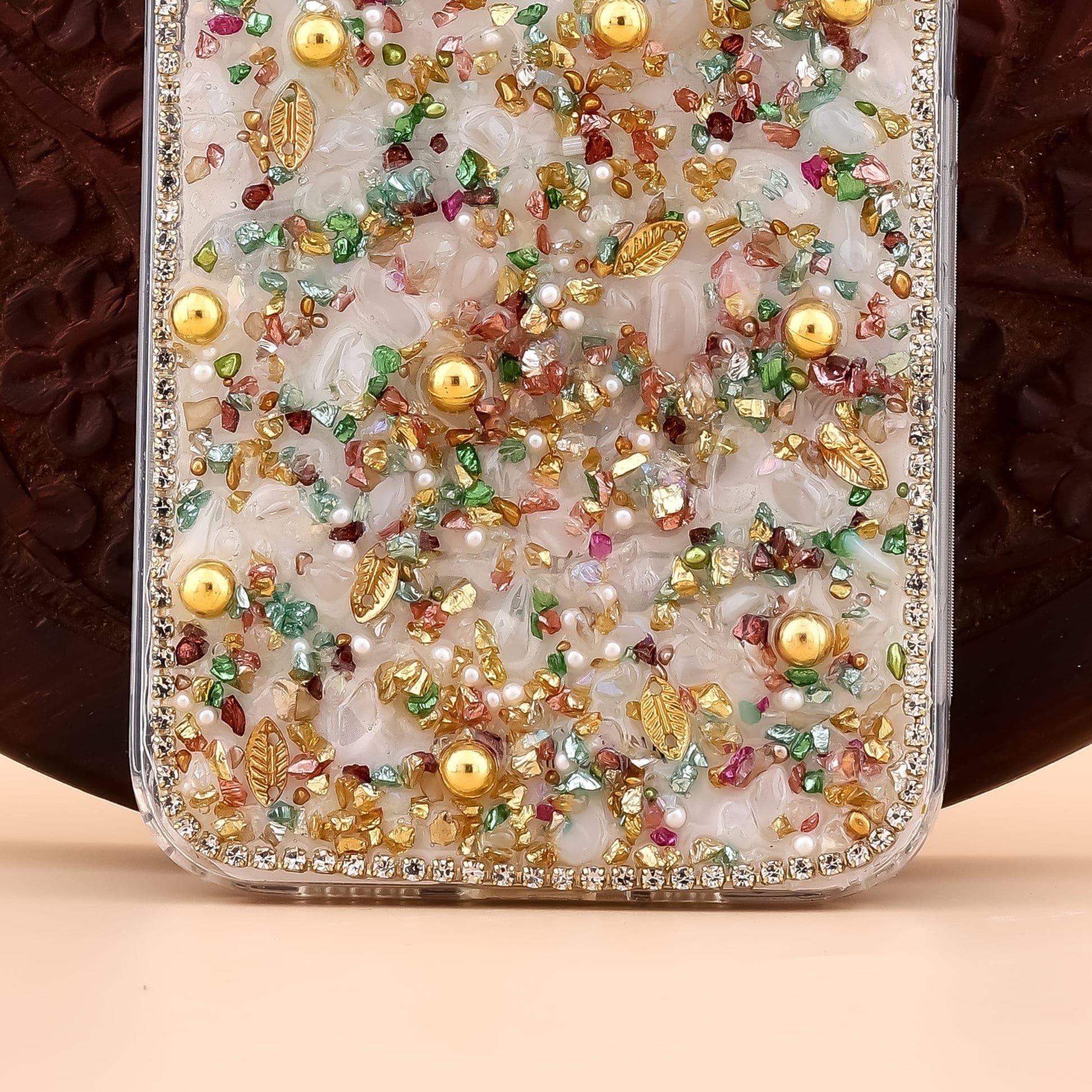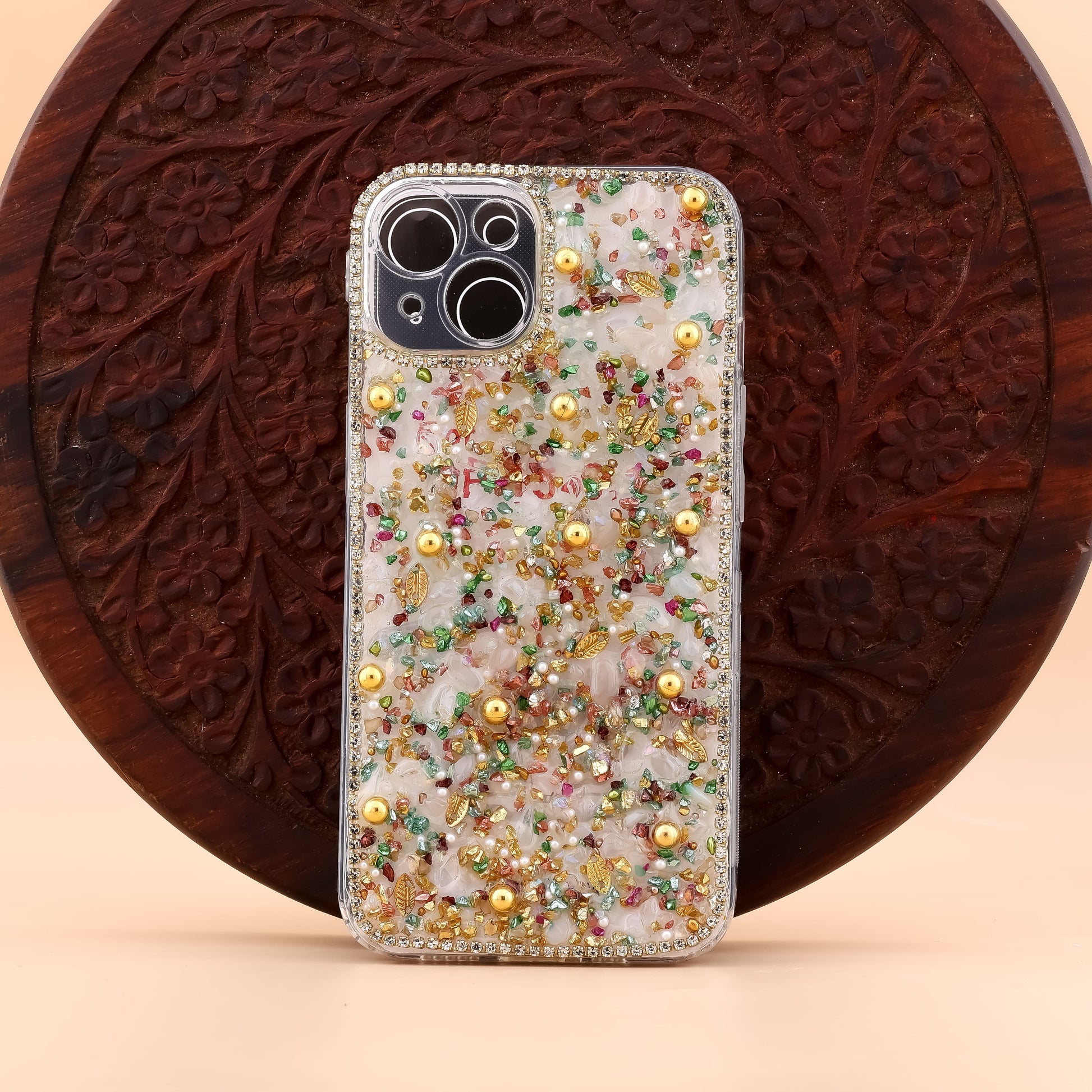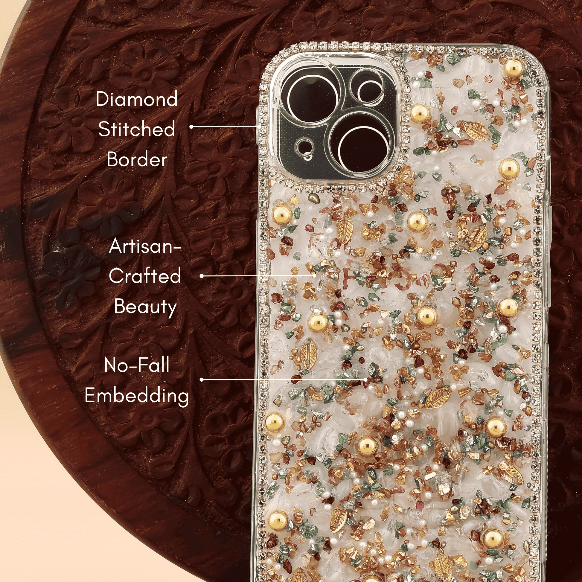 Intricate gold motis blend with fiery red and silver stitches, creating a rich, delicate case that shines with warmth and craftsmanship in every tiny detail. Whether you're out for coffee or capturing mirror selfies, this case adds a soft glam that feels luxurious, feminine, and uniquely you.