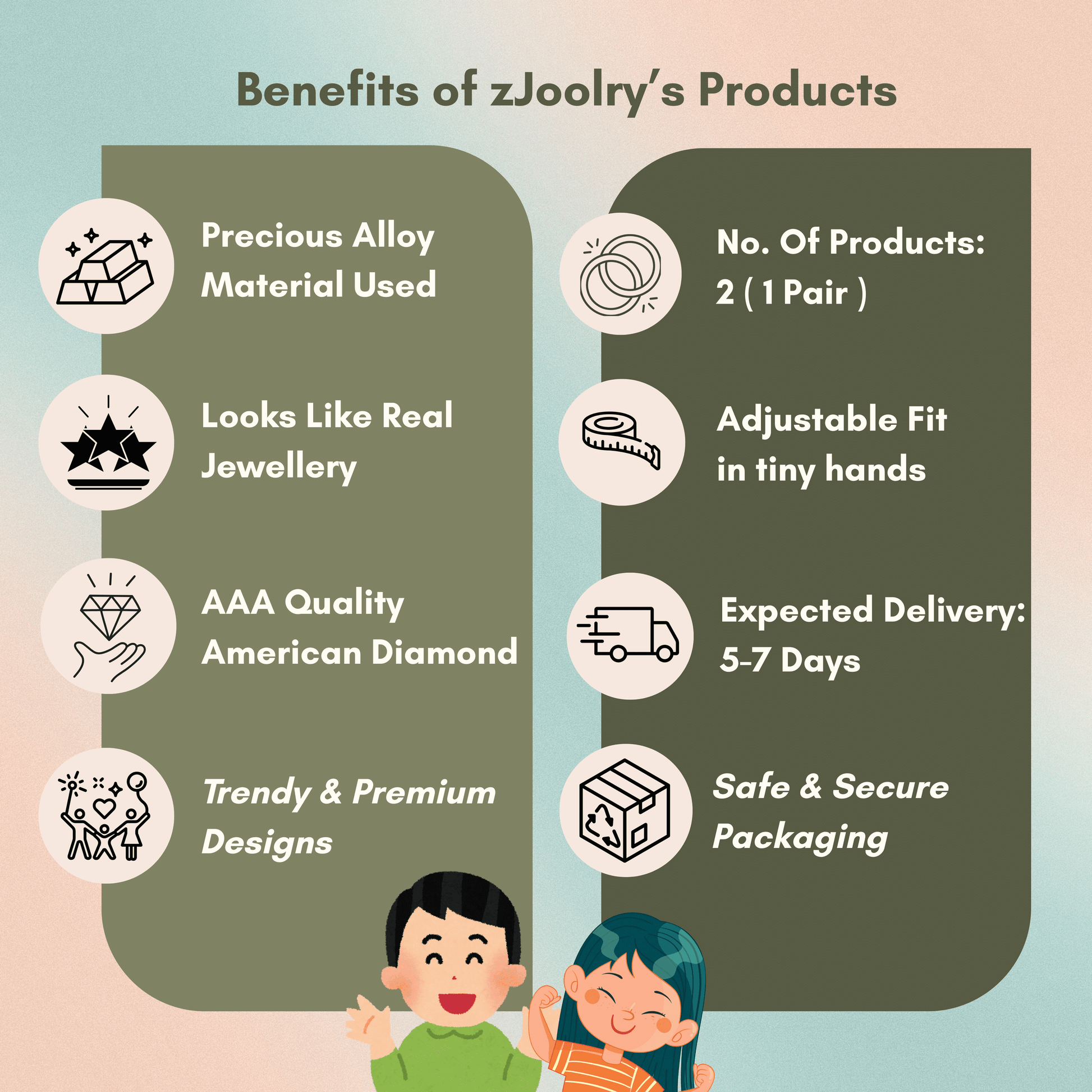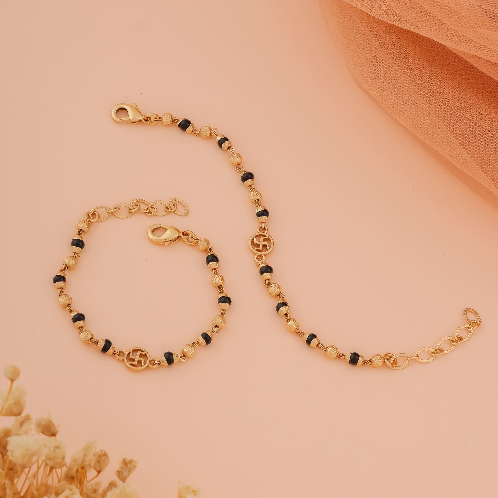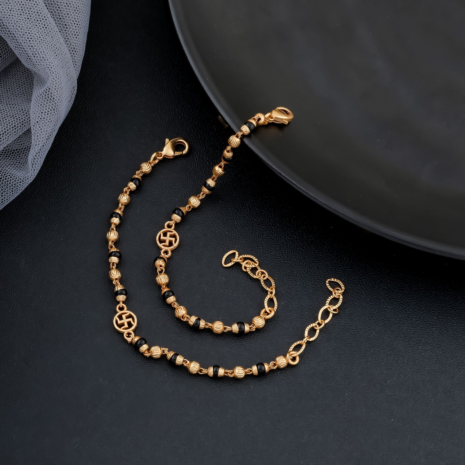 Color: Gold Material: Precious Alloys Plating: Gold Tone Shine Size: Each 12 cm + 2 cm Adjustable Age Group: 3 Months to 8 Years Gender: Unisex (Boy & Girl) No. Of Products: 2 ( 1 Pair )
