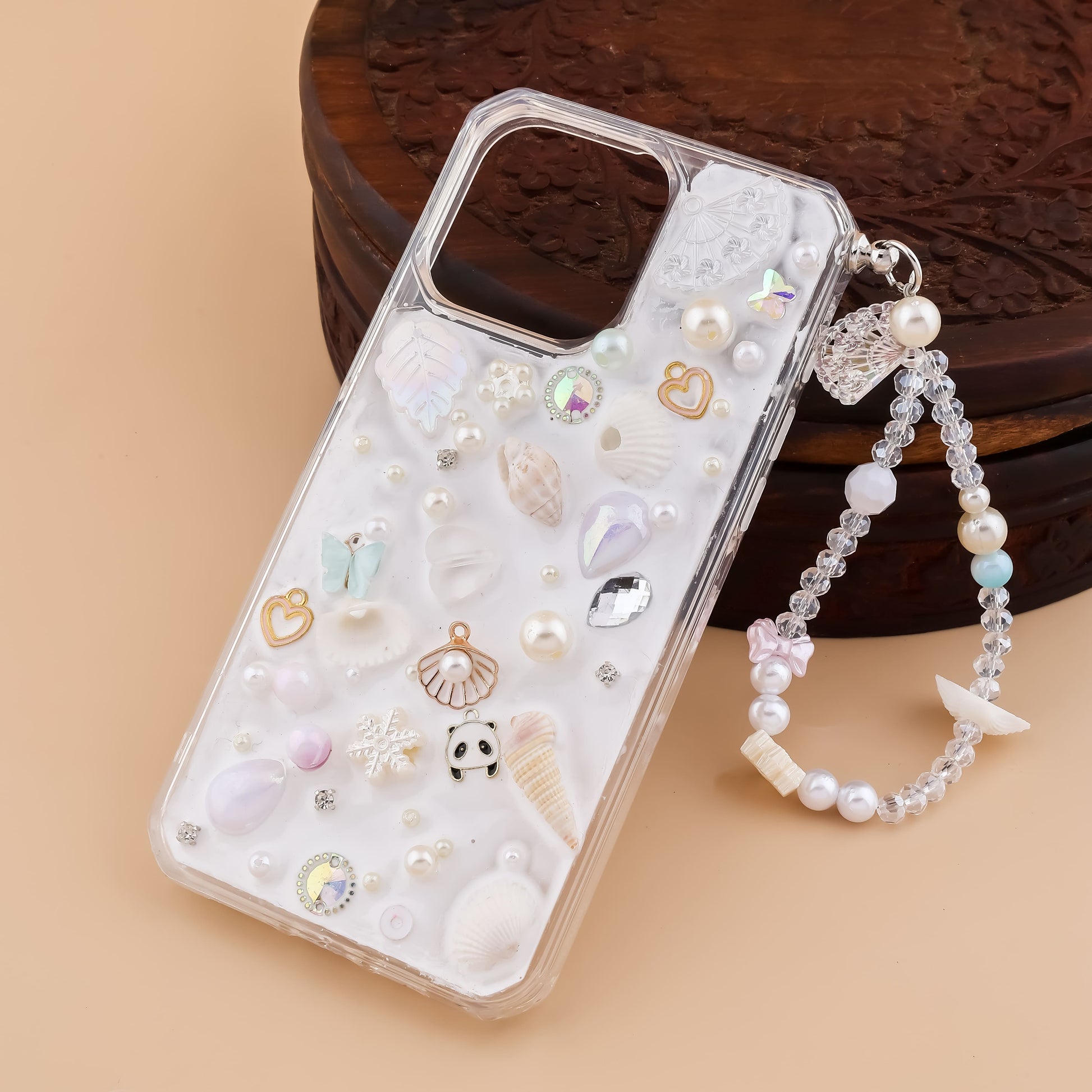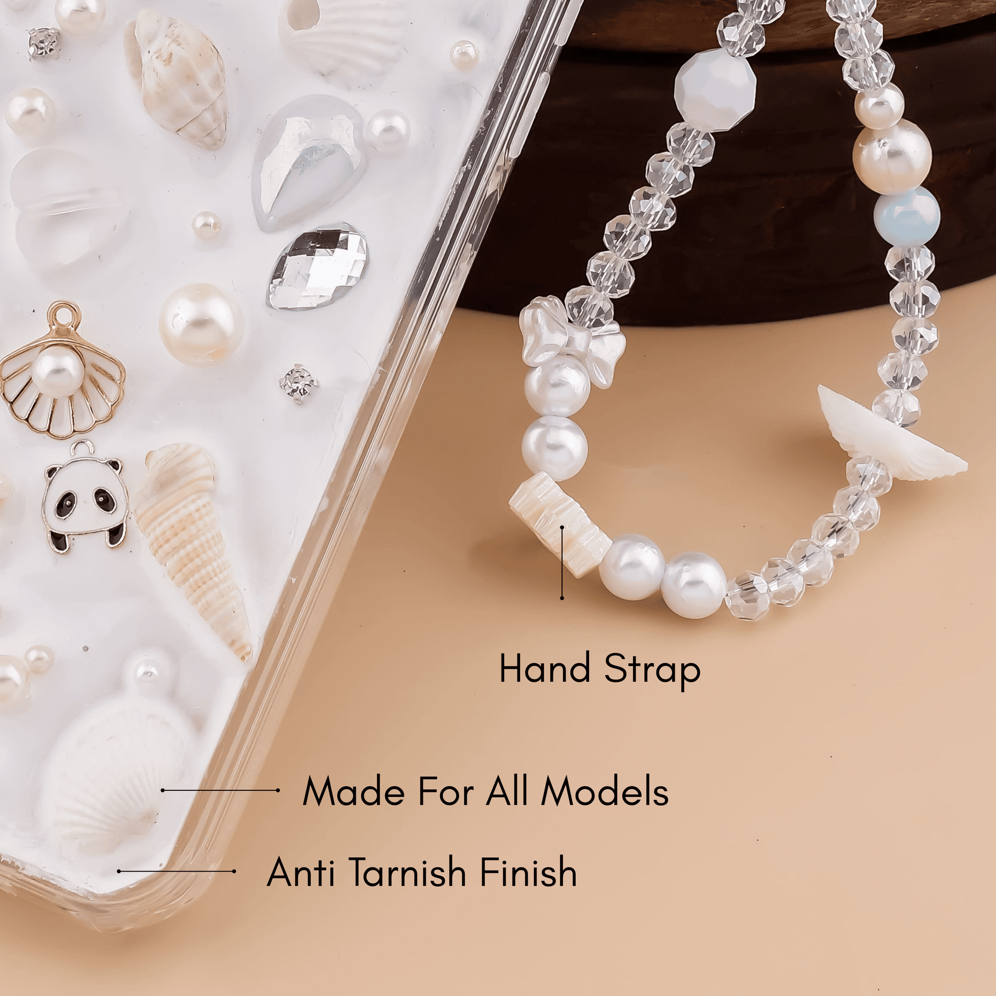 A playful daydream in your hand—adorable pandas, sea shells, stars, hearts, and butterflies dance over a fresh white backdrop. Perfect for beach trips or café chats, this cover radiates charm, lighthearted fun, and the cute, dreamy vibe that feels uniquely you.