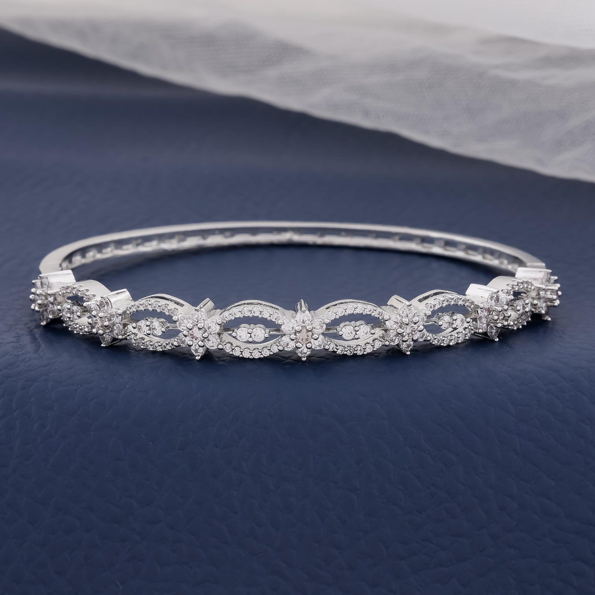 Color: Bright Silver Material: High Grade Brass Size: 6 cm Clasp Type: Slip-on Clasp Diamond: Premium Cubic Zirconia