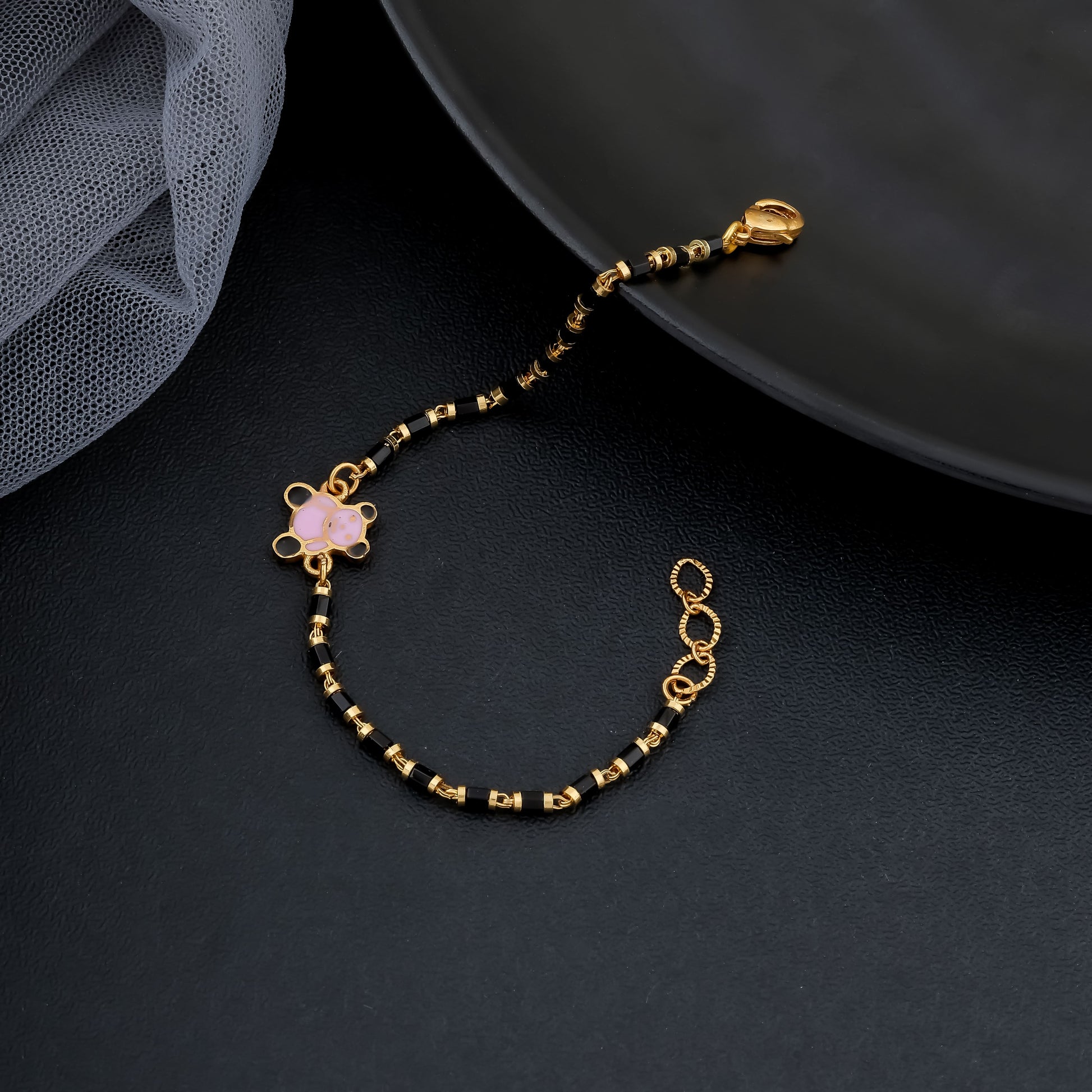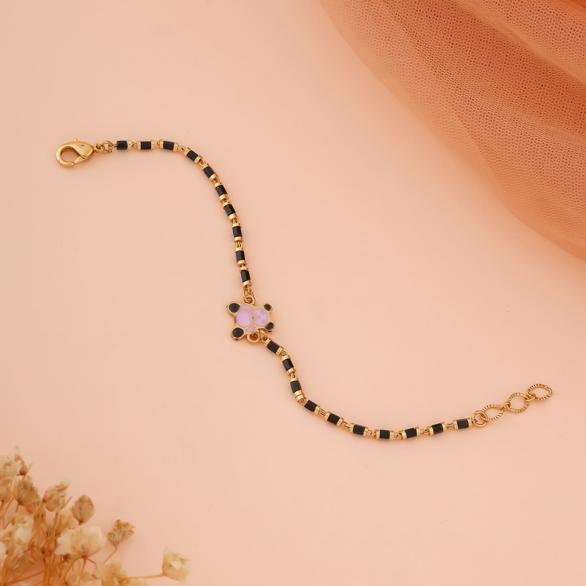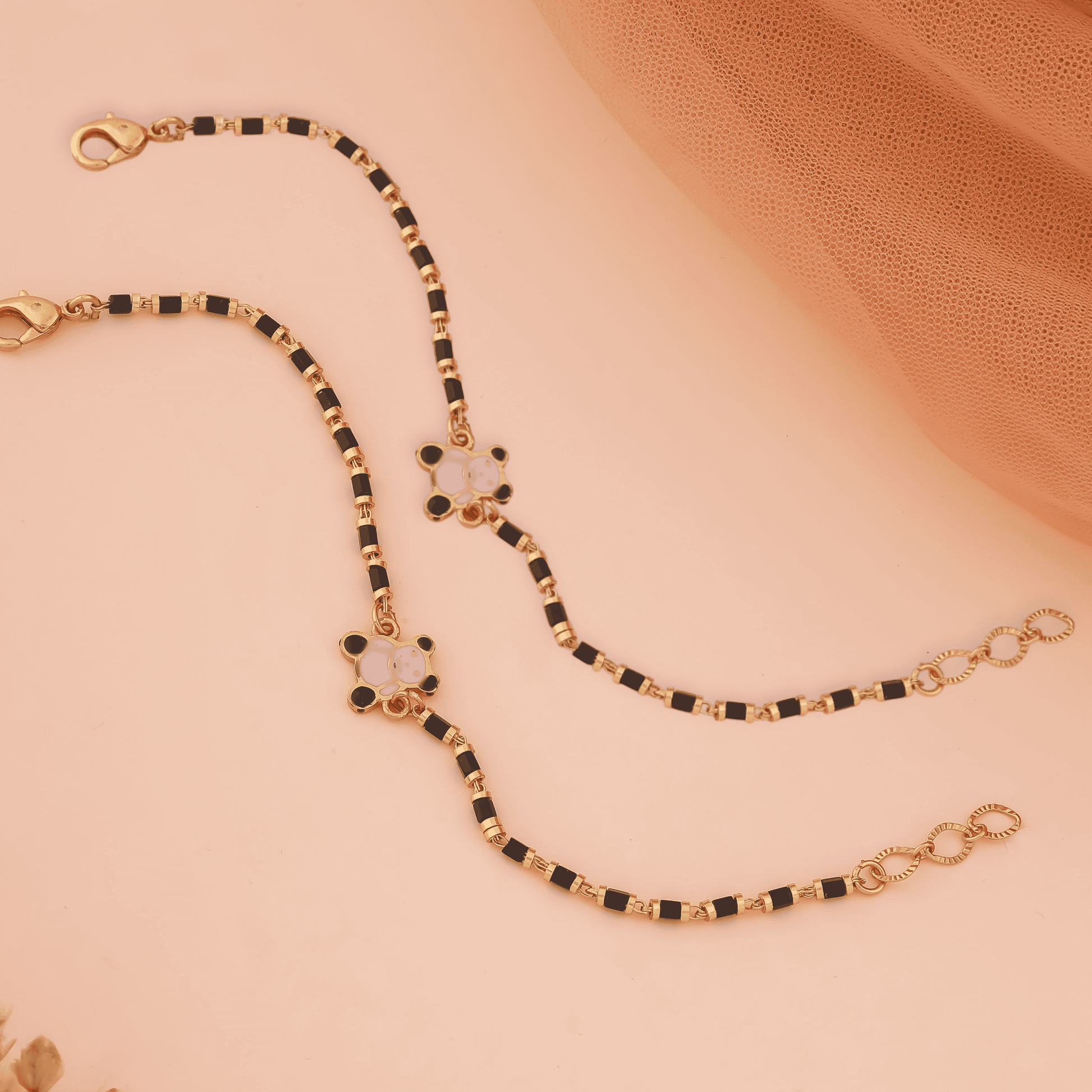 Color: Gold Material: Precious Alloys Plating: Gold Tone Shine Size: Each 12 cm + 2 cm Adjustable Age Group: 3 Months to 8 Years Gender: Unisex (Boy & Girl) No. Of Products: 2 ( 1 Pair )