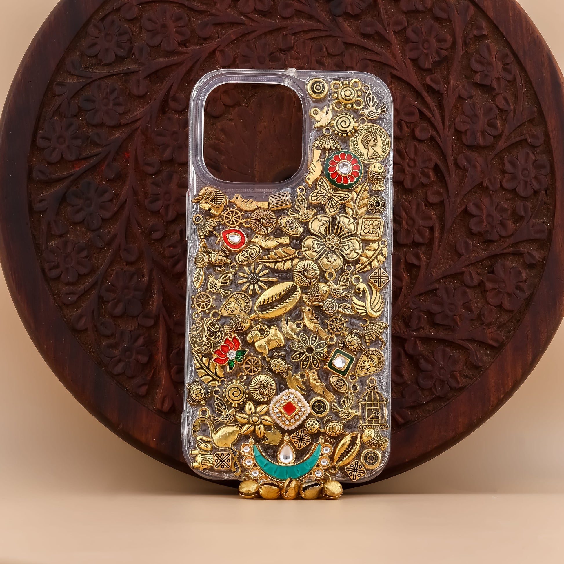 A boho wonder on transparent canvas—tiny birds, flowers, elephants, and leaves blend with playful art to tell your story. From café chats to mirror selfies, this cover radiates layered charm, cultural spirit, and that free-spirited vibe that feels uniquely you.
