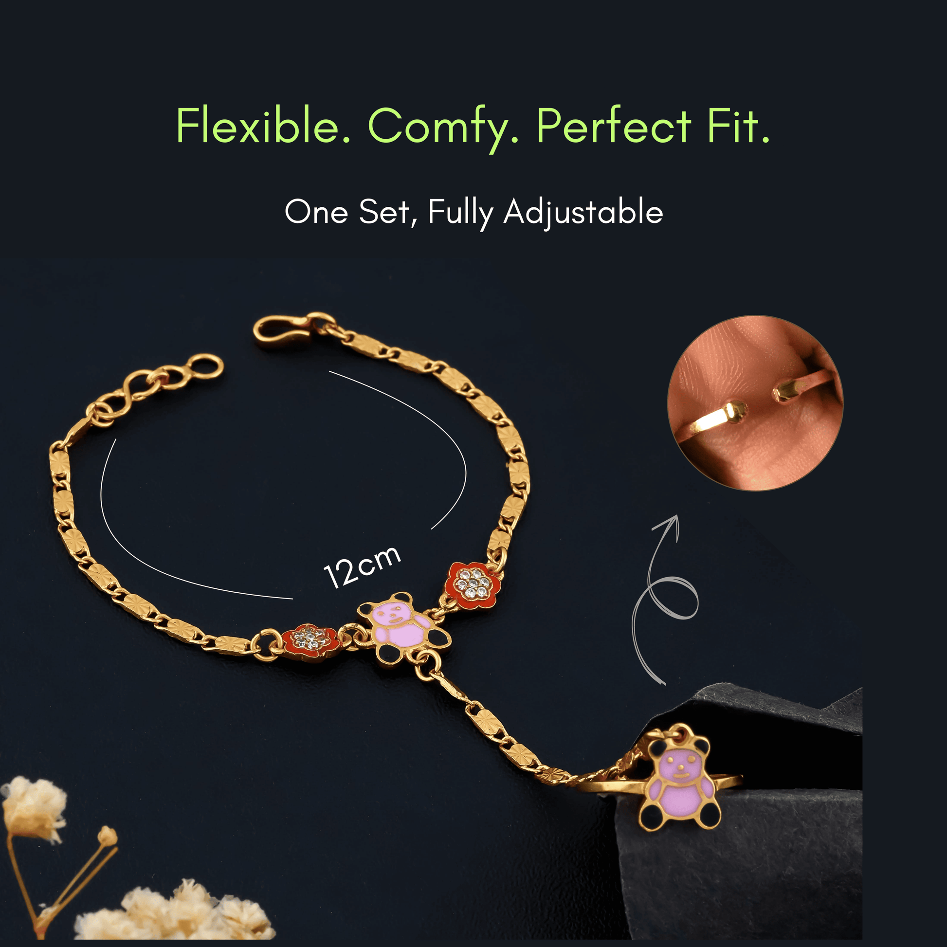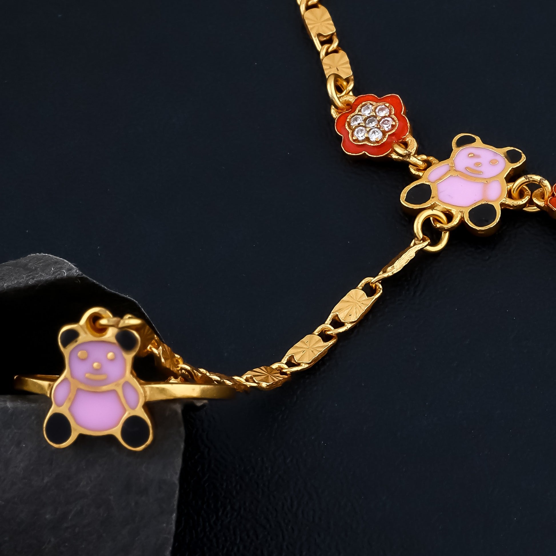 This adorable Pocha set features a cute white panda face that brings instant joy and personality to your child’s look. With its golden shine and comfortable fit, it’s the perfect accessory for daily wear or dress-up fun.