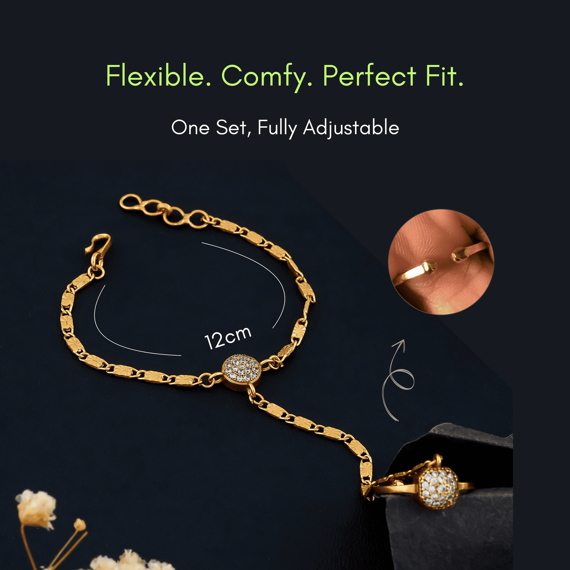 Color: Gold Material: Precious Alloys Plating: Gold Tone Shine Size: Each 12 cm + 2 cm Adjustable Age Group: 3 Months to 8 Years Gender: Unisex (Boy & Girl) Select The Package: Single | Pair